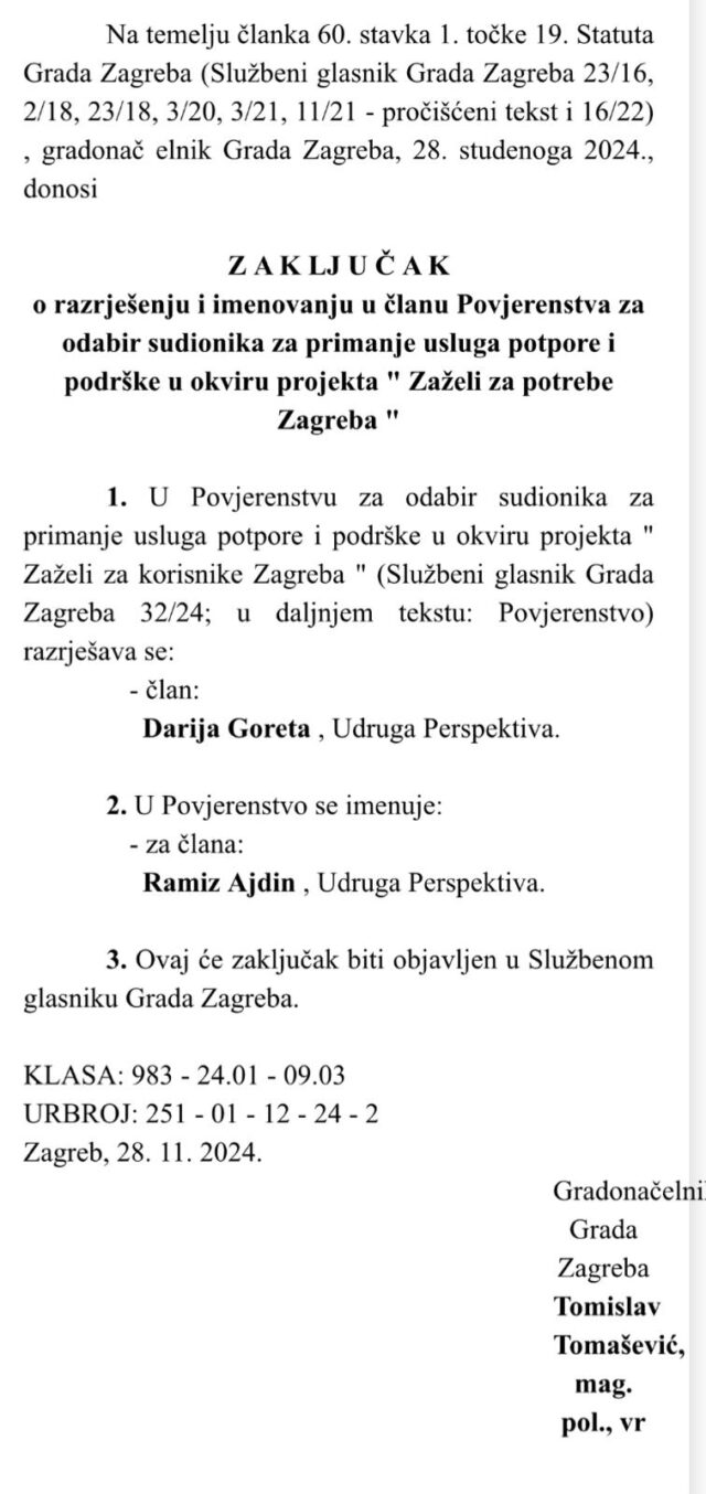Oduševljeni Branko odmah je odradio svoj dio posla i dogovorio s Tomaševićem smjenu Darije Gorete iz Povjerenstva za odabir sudionika za primanje usluga i podrške u okviru projekta „Zaželi za potrebe Zagreba“, a u to povjerenstvo nezapamtljiva naziva imenovan je politički iskusni, kod Bandića iskovan, u HDZ-u prekaljen, a u SDP-u realiziran rečeni Ramiz.