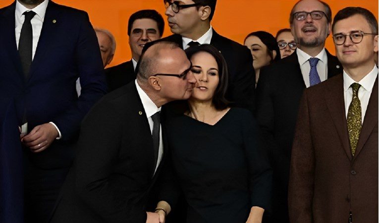 Ali su ga kamere ufatile u pokušaju obljube njemačke ministarke vanjskih poslova Annalene Baerbock, na današnjoj konferenciji o nečemu.