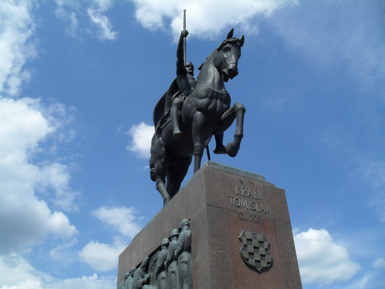 Prvi susret s gradom kojeg su kroz desetljeća osvojili i pokorili doseljenici iz Dalmacije, Bosne i Hercegovine, Like, bio je upravo susret s kraljem Tomislavom. Impozantnim spomenikom, koji sjedi na moćnom konju, ponosno i čvrsto držeći vladarsko žezlo u ruci. A ne znamo jel je bio kralj. Ili nije. U glavnom, u ruci drži neki kurac.