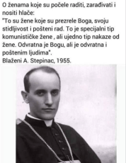 Saznao sam da je za Hrvatsku od neviđene važnosti imenovanje Stepinca svecem. Bez toga naprosto ne možemo. Mene užasno boli duša kad se sjetim da Stepinac nije svetac. Kvaliteta života mi je u kurcu. Što će mi povećanje mirovine od dvanaest EUR-a, a Lojzek nije svetac? Jebeš takav život. Pa će on odma čim postane predsjednik, telefon, Alo, jel to Papa? E pa dragoviću moj odma da si proglasijo Lojzeka svecom. Tome će se veseliti naročito žensko biračko tijelo, o kojem je Stepinac imao vrlo visoko mišljenje.