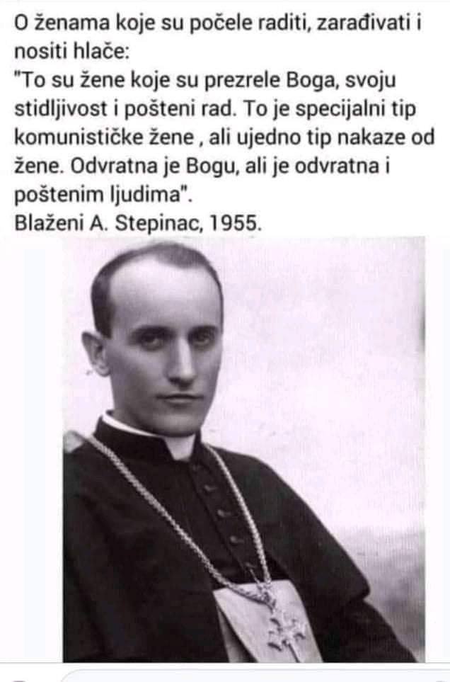 Prema mišljenju Hrvatskog tjednika, kojeg čitaju i žene, vjerojatno i one zaposlene, Stepinac je morao postati svecem.